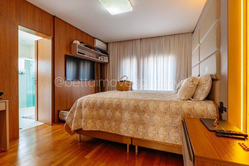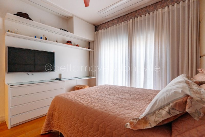 4 suítes, sendo a suíte máster com closet e hidromassagem, amplo living, sala de estar, sala de jantar, sala de TV, lareira, ar condicionado, cozinha com armários, copa, espaço gourmet, piscina, churrasqueira, varanda, 4 vagas na garagem, área do terreno 420 m², área construída 480 m².