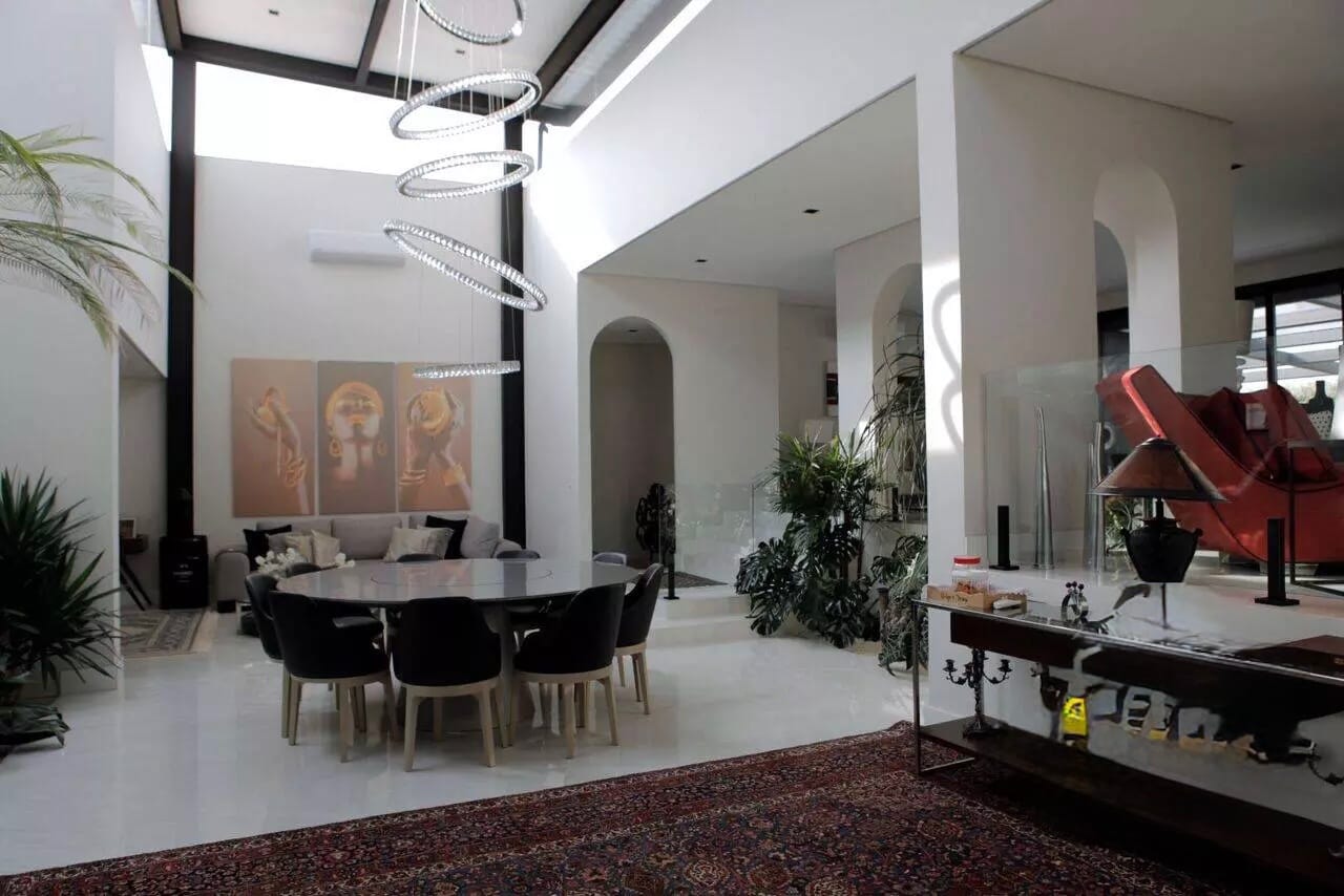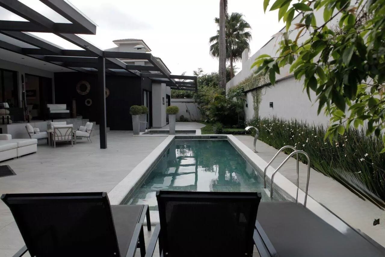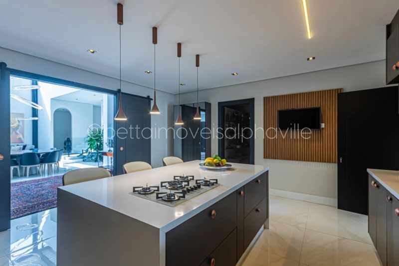 5 dormitórios, sendo 4 suítes, amplo living, sala de estar, sala de almoço, sala de tv, sala intima, escritório, home theater, ar condicionado em todos os ambientes, cozinha moderna e equipada, copa, espaço gourmet, piscina, churrasqueira, adega estilo medieval, 8 vagas na garagem, área do terreno 1.120 m², área construída 750 m².