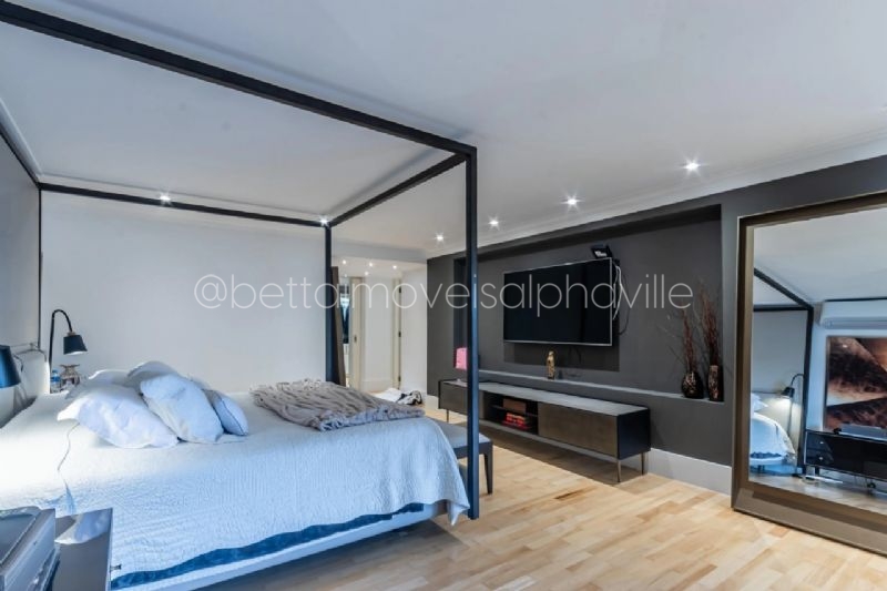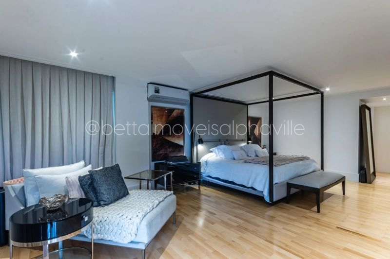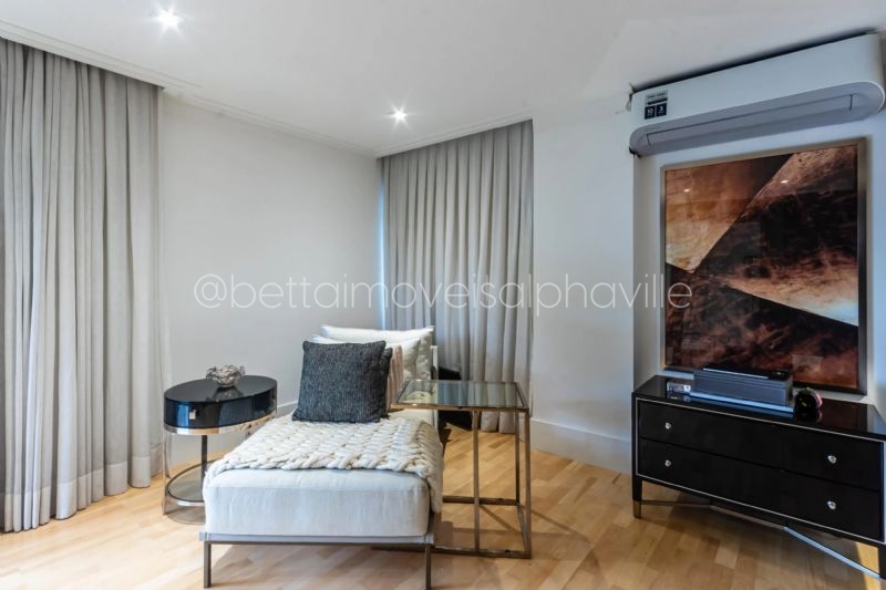 4 suítes, amplo living, pé direito duplo, sala de estar, sala de jantar, sala de almoço, sala de TV, escritório, lareira, elevador, ar condicionado em todos os cômodos, cozinha, 2 dormitórios de funcionários, espaço gourmet, piscina com raia de 20 metros, churrasqueira, sauna, amplo jardim, espaço para área fitness, varanda, imóvel recém reformado, projetado pelo arquiteto Fernando Rocco, marcenaria planejada em toda a casa, 8 vagas na garagem, área do terreno 2237 m², área construída 1100 m².