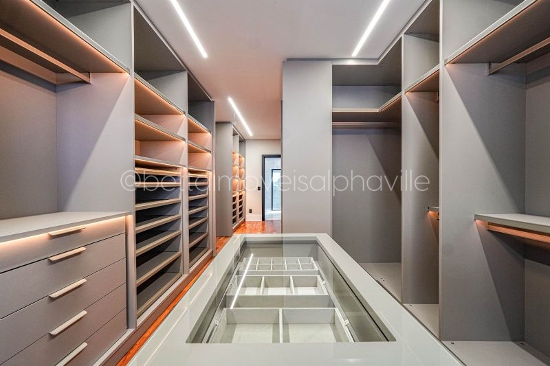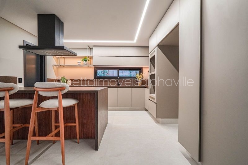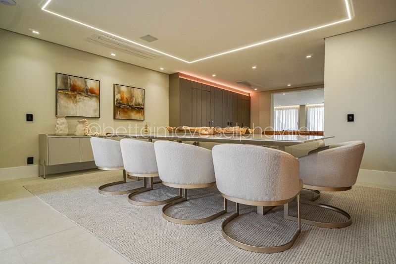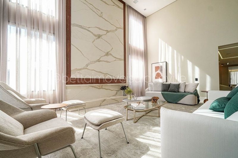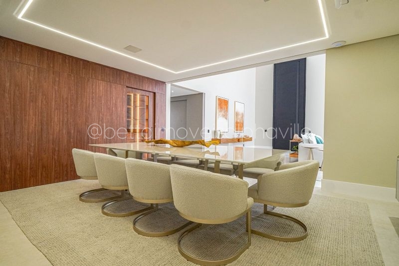 4 suítes, sendo a suíte master com closet e hidromassagem, amplo living, pé direito duplo, sala de estar, sala de jantar, sala de almoço, lareira, home theater, escritório, ar condicionado, elevador Bass Tech, cozinha com ilha, copa, despensa, lavabo, área de serviço, roupeiro, dependência para funcionários, lavanderia, espaço gourmet, piscina aquecida, churrasqueira, adega climatizada para 170 rótulos, varanda, aquecimento à gás, gerador Generac, automação total, planejados ID Móveis, portas Pormade, piso superior em madeira Cumaru, depósito, 6 vagas na garagem, área de terreno 788,81 m², área construída 722,11m².