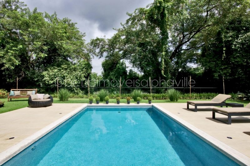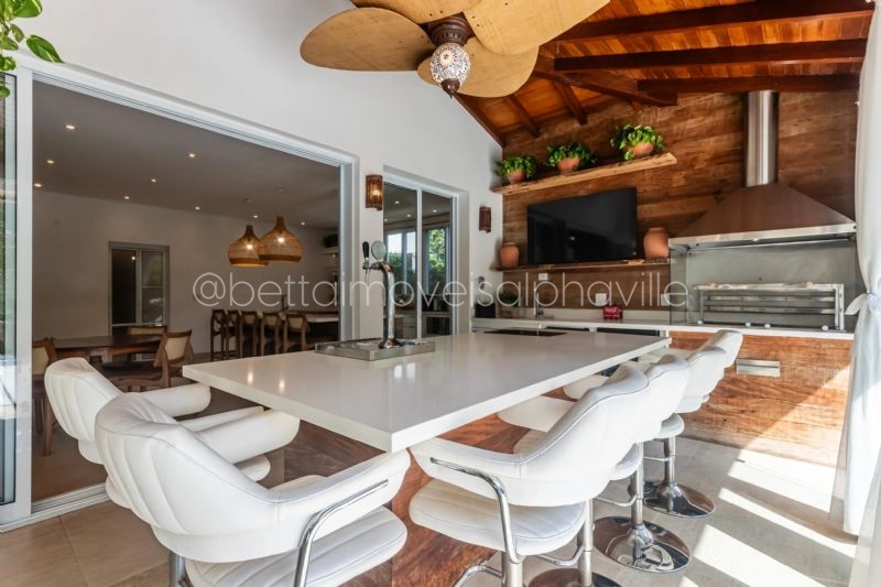 Casa inteira em único estilo e contexto de acabamentos e decoração criando personalidade, e conta também com a mata do parque ecológico que completa todo o estilo. 4 suítes, sendo a master com closet e banheira, home theater, living para 2 ambientes integrados, lareira, sala de TV, lavabo, escritório, sala de almoço, cozinha planejada gourmet, lavanderia, espaço gourmet com forno de pizza e churrasqueira, chopeira, espaço zen, para ioga e meditação, fire pit, piscina aquecida, fundo com linda vista para o bosque, 5 vagas de garagem, sendo 2 cobertas. 580m² construídos em terreno de 1.000m².