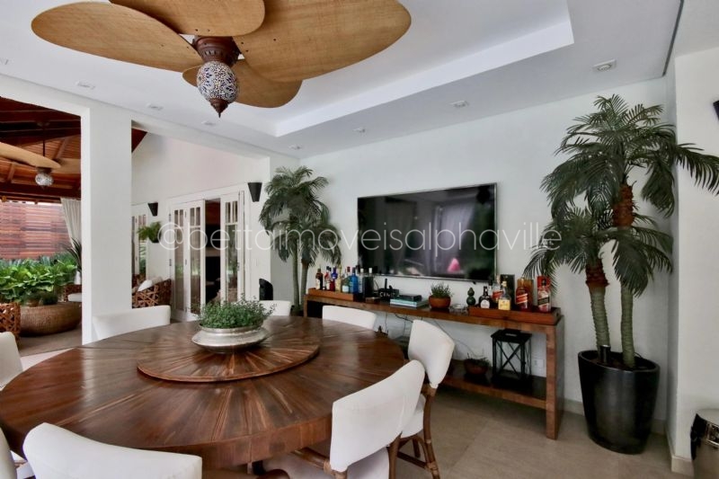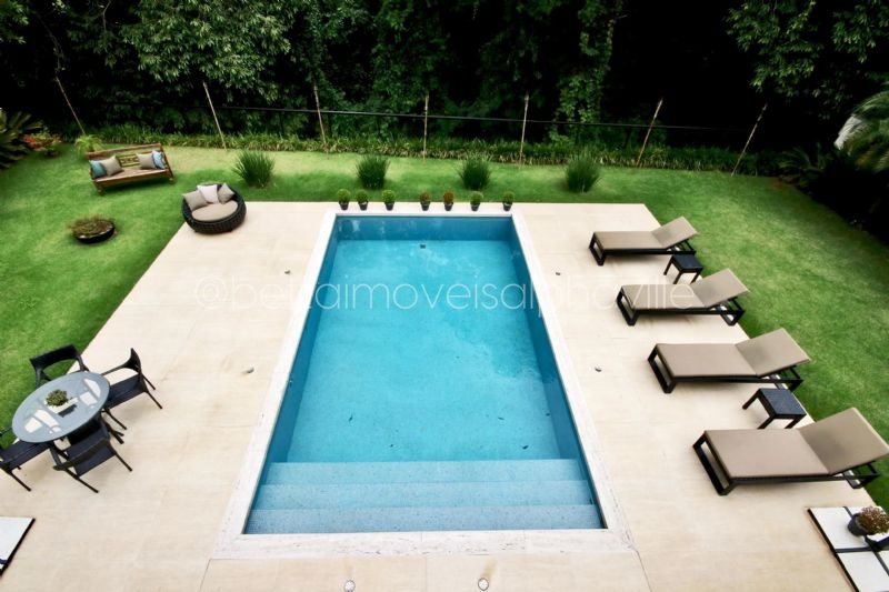 4 amplas suítes, closet, hidromassagem, living para 4 ambientes, home theater, escritório, cozinha planejada, piscina, sauna, lago com carpas, mini campo de futebol, ampla varada com cozinha gourmet com churrasqueira, integrada a cozinha, family room, 3 vagas de garagem. 750m² construídos em terreno de 2.000m².