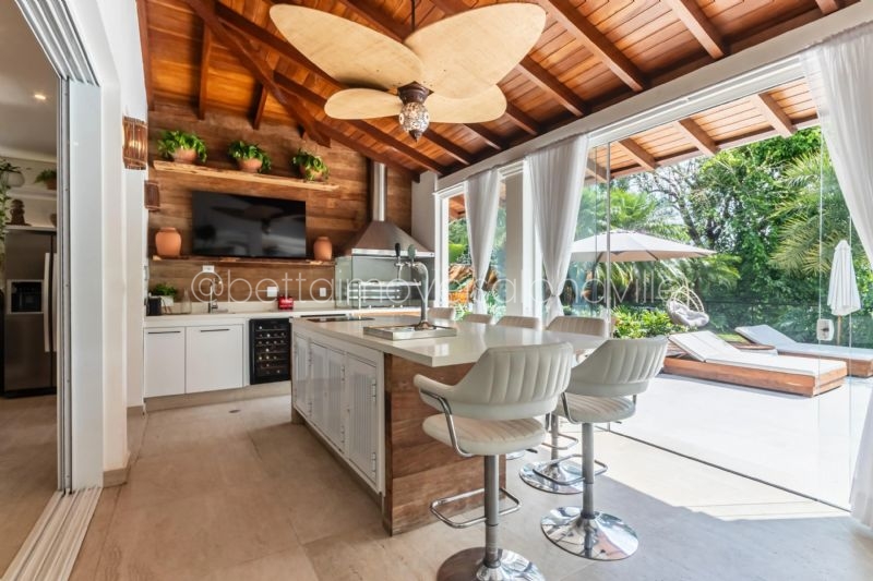 Com  7 dormitótios sendo 6 suítes, 6 vagas de garagem piscina de 15 x 4,5, spa, academia, churrasqueira com forno a lenha e pizza, infraestrutura para som ambiente, aspiração central, câmeras de segurança e computação mais ramais, biblioteca, escritório, ar condicionado, todas as suítes com hidromassagem, sala de almoço, sala de jantar, sala de estar com lareira, home theater com lareira, suite do casal com lareira, elevador monta carga, adega, 2 depósitos, 2 dependências de empregada, lavanderia ampla, casa repleta e rica em armários embutidos. AC.: 1200 m² .
