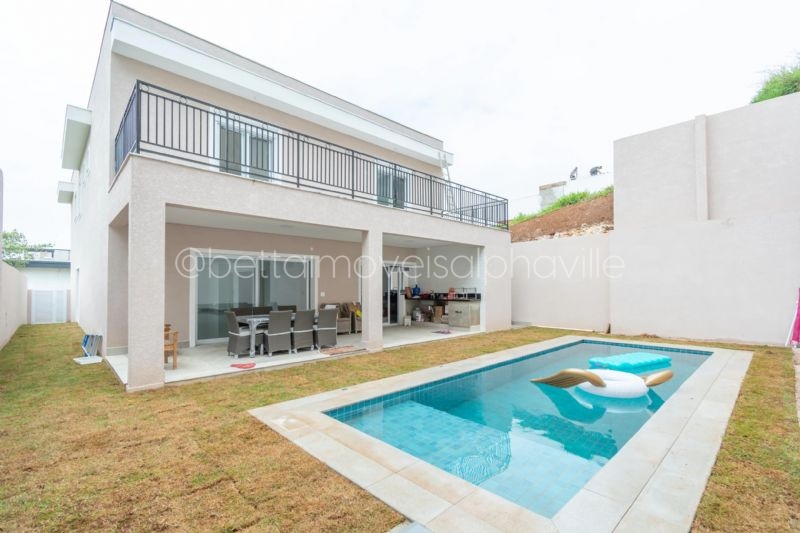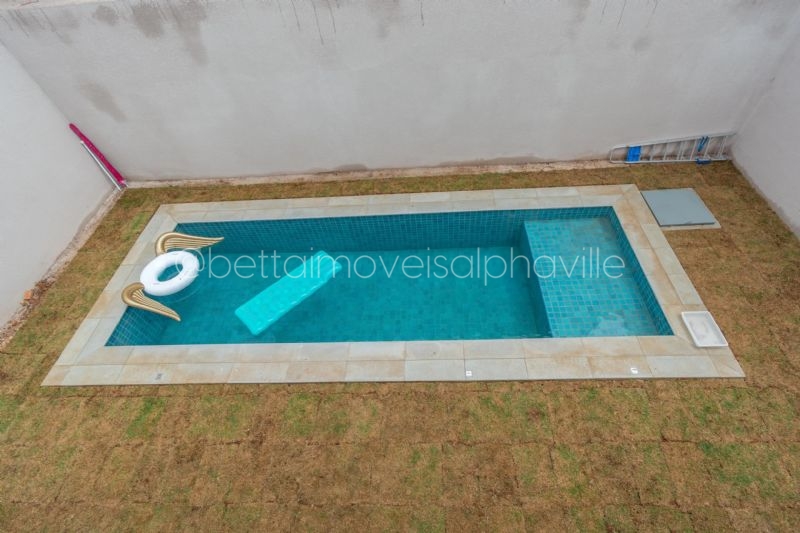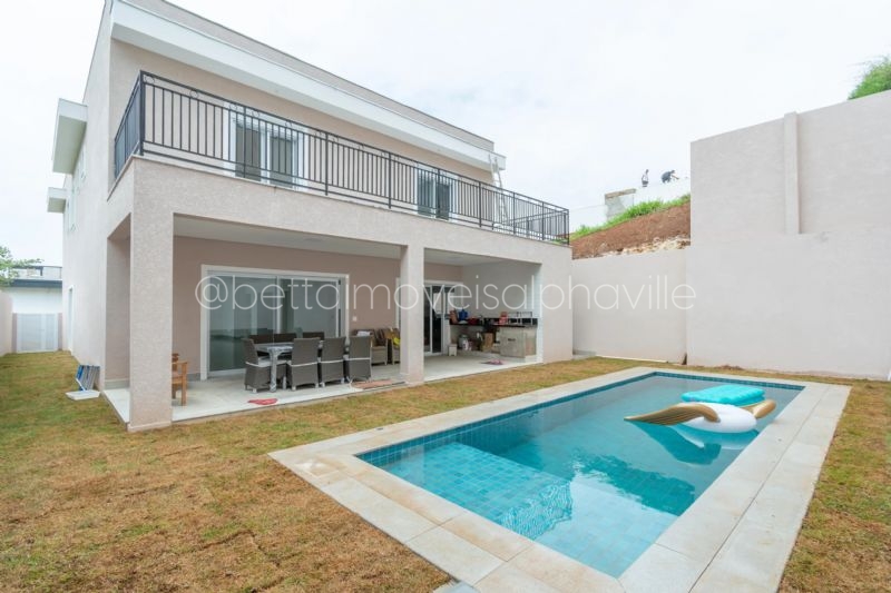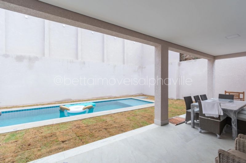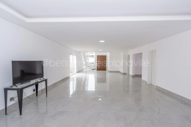localizado na avenida principal do condomínio Alpha 2, com 912,78 m² de terreno, e 762,90 m² de construção possui uma amplo living para 4 ambientes, 5 amplos suítes e área de lazer completa com piscina, churrasqueira e uma bela academia.