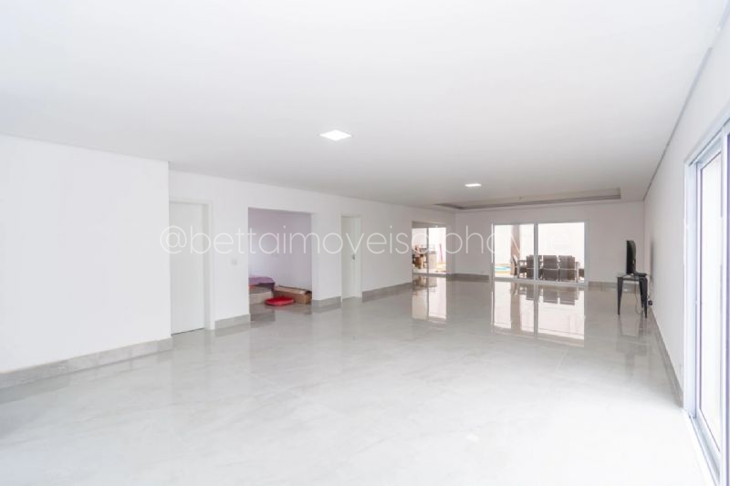 4 suítes, sala íntima, living para 3 ambientes com lareira, cozinha, lavanderia, área gourmet com churrasqueira, ótima área de lazer com piscina, 5 vagas de garagem cobertas. 840m² construídos em terreno de 900m².